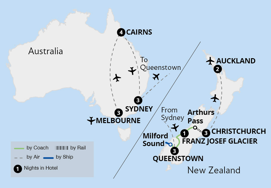 • Stay in 4 and 5-Star hotels in Australia and New Zealand’s most notable destinations