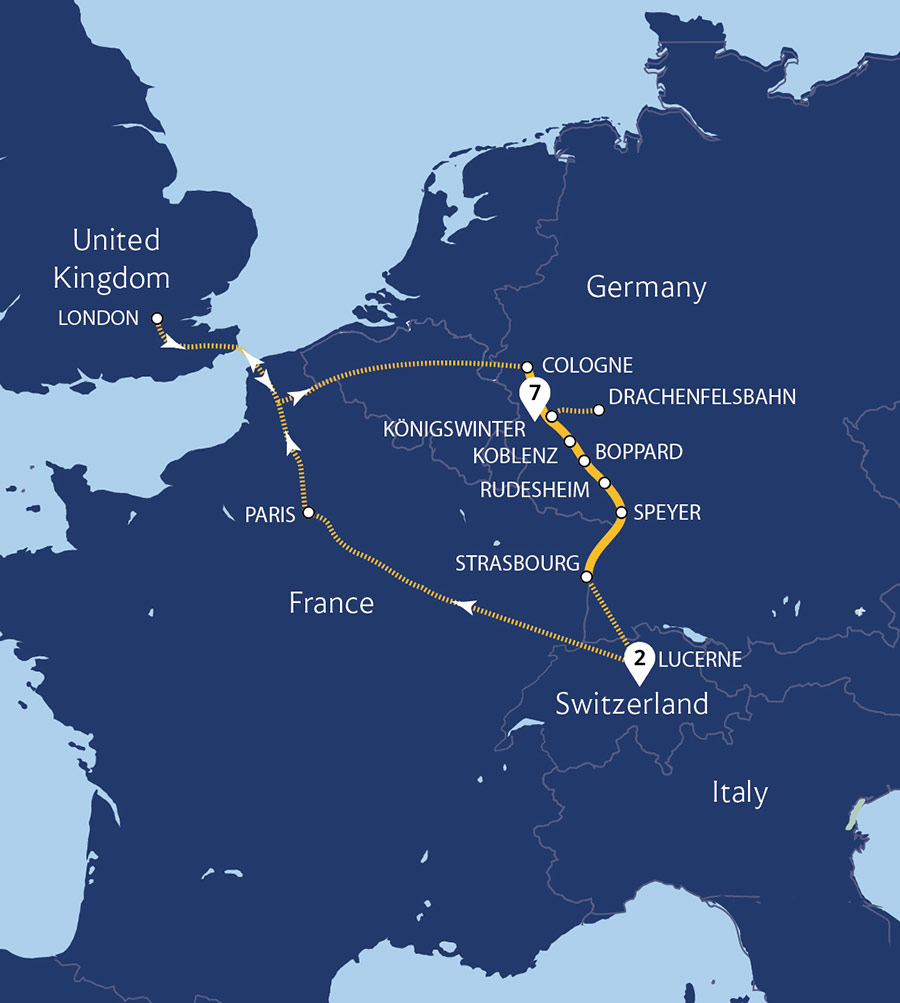 This beautifully scenic, easy-paced cruise takes us to the towns and cities of the River Rhine. Sailing by enchanting landscapes, discover Heidelberg and Strasbourg along with the sensational vistas of the UNESCO-listed Rhine Gorge. From Cologne, we sail south to explore the town of Koblenz, enjoy a guided tour of Heidelberg, and wander...