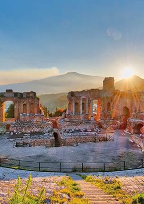 From a base in the laid-back coastal town of Giardini Naxos, explore enchanting eastern Sicily - a perfect combination of scenic coastline, historic cities and unique culture. Enjoy a guided tour of Taormina and its beautiful Greek theatre overlooking the Ionian Sea and uncover the ancient town of Syracuse, the birthplace of Archimedes.
