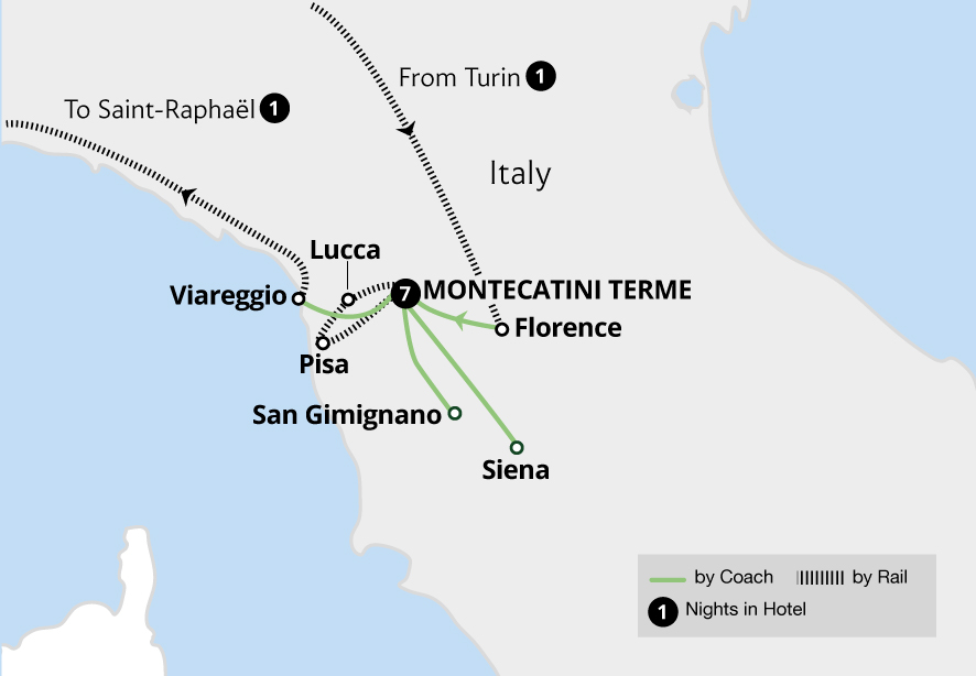 • Travel by First Class rail and stay in 4-Star hotels, including a coastal spa resort