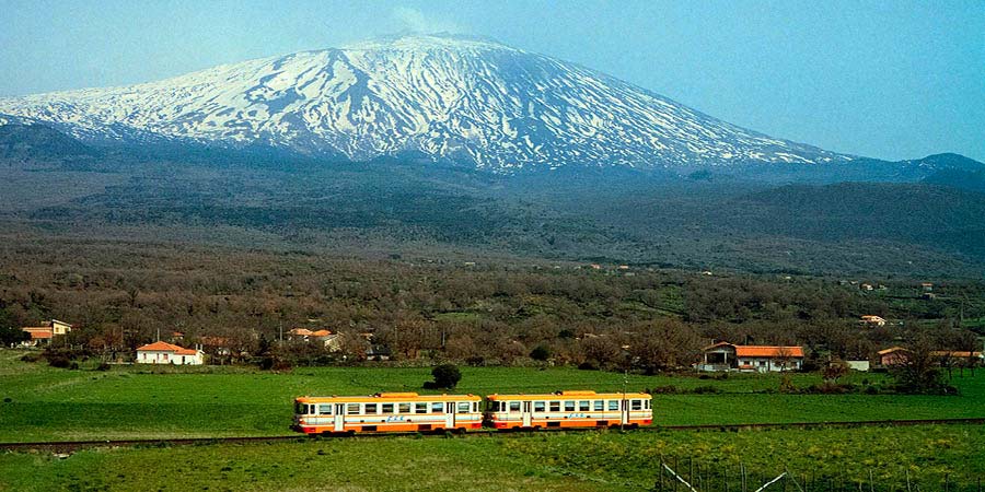 Winding its way around the slopes of Mount Etna, the historic Circumetnea Train offers a unique journey showcasing Sicily's volcanic landscapes. This narrow-gauge railway winds through ancient lava fields, foothill villages and vineyards, revealing a side of the island few visitors see.
