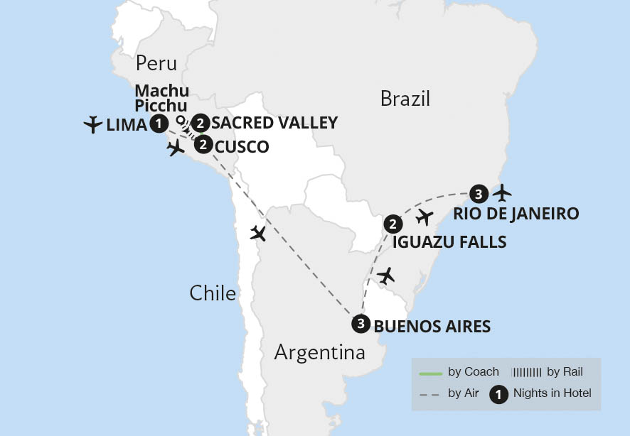 Experience a once-in-a-lifetime tour of South America's impressive cities, astonishing natural wonders and ancient treasures. From the fascinating Peruvian capital of Lima, enter the magical Sacred Valley and visit the iconic 'Lost City' of Machu Picchu in its breathtaking location amid emerald-green hills, floating mist and soaring peaks. ...