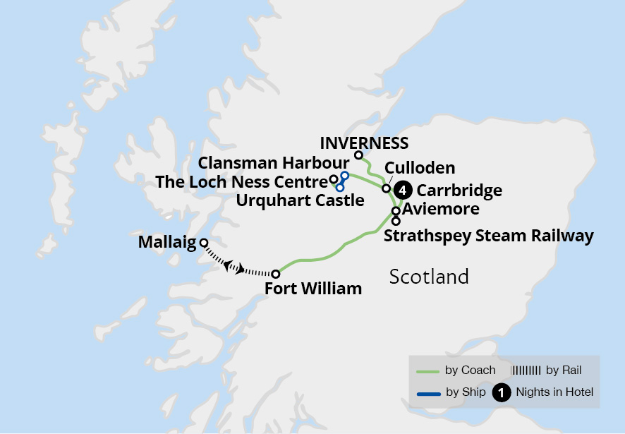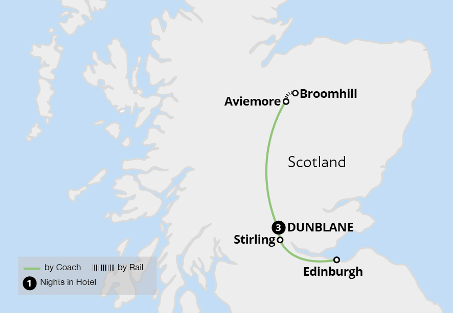From our base in Carrbridge, we discover the very best of northern Scotland. Soak up breathtaking scenery as we travel aboard the legendary Jacobite steam train and the charming Strathspey Steam Railway. Along the way, we marvel at the towering mountains, shimmering lochs, and emerald forests that make up the Scottish landscape. Step back...