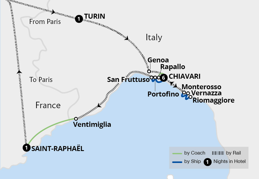 Explore the enchanting destinations of the Italian Riviera while based in Chiavari on the Ligurian Sea. Cruise to the Cinque Terre villages, clinging to towering cliffsides, and Portofino, a popular village set within a natural harbor. Uncover San Fruttuoso abbey, located on a beach in a peaceful cove, and delve into the history of Genoa, the...