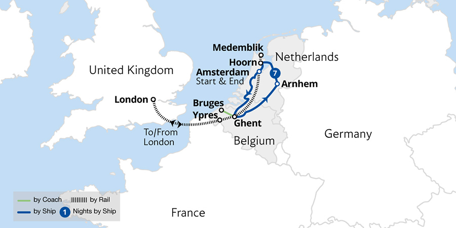 Embrace the stunning scents and colours on this flower-filled cruise through Belgium and the Netherlands. Walk among incredible floral displays at Keukenhof Gardens, visit poignant war sites and explore the quaint streets of Amsterdam, Bruges and Ghent. Cruising aboard a luxurious ship, step ashore at ports along the way to visit Ypres...