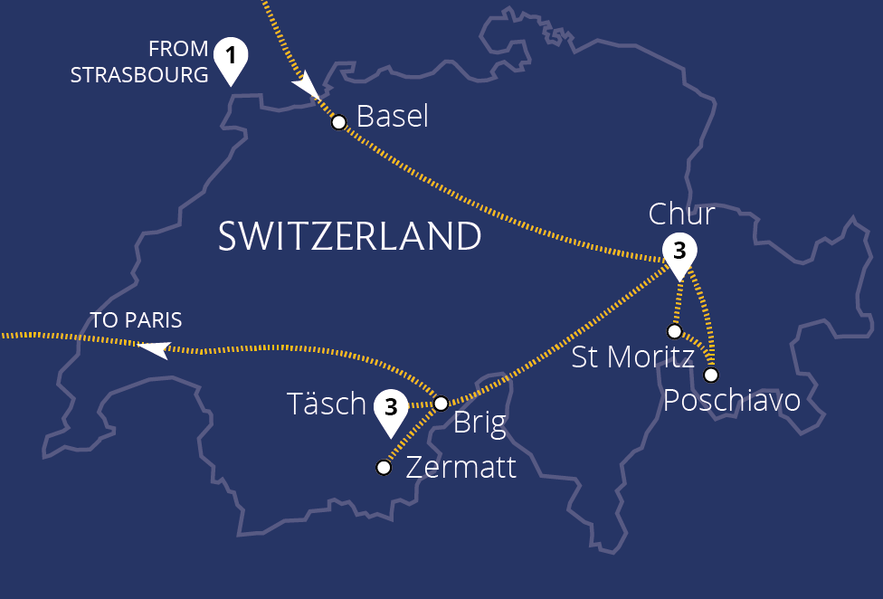 Enjoy Switzerland's warm hospitality and astounding landscapes from traditional hotels in historic Chur and idyllic Täsch. Soak up dramatic scenes of soaring mountains and glaciers on journeys aboard two iconic trains. Cross the Alps on the amazing Bernina Express, admiring glacier views enroute, and bask in views of alpine valleys and...